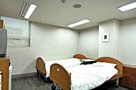入院室。入院期間中はこの部屋で生活することになります。また、お値段はあがりますが、一人部屋の個室での入院も可能です。 院内には入院患者が使用できるPCルームや待合室、休憩ルームも完備されています。