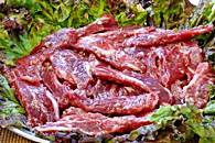 細切りにして味付けされた牛肉を焼き、特製タレにつけて食べるやンニョムワンカルビ。