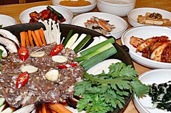 焼肉メニューは、コットゥンシム(霜降りのロース)、センカルビ(味付けしていないカルビ)、ニャンニョムカルビ(味付けカルビ)、そして、ポッソヤチェセンプルコギ(キノコ野菜プルコギ)の4種類。一品の食事メニューは、サムゲタン、ユッケジャン(辛い肉野菜スープ)、カルビタン、冷麺、そして、雑誌などでよく紹介されるソコギキムチポックムパッ(牛肉キムチチャーハン)があります。また、パジョン(チヂミ)も人気メニューです。大型店ですが、衛生やサービスに特に気を使っているとのことで、日本人観光客に使いやすい焼肉店といえます。