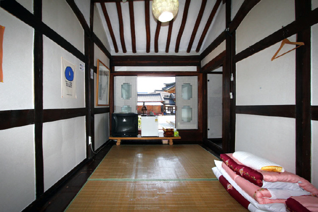 全州韓屋村で最も古い歴史を持つ学忍堂(ハギンダン)は朝鮮時代末期の1908年に建てられた伝統家屋で、当時は99間を持つ両班の邸宅として2千坪以上の敷地を誇っていました。母屋は韓国伝統芸能のパンソリの公演を念頭に100名を収容できるよう建てられました。1945年以降は政府の要人が滞在する迎賓館としての役割を果たしてきました。現在では規模が縮小されていますが、当時の姿を残した4棟の建物が残され、その内9部屋が宿泊施設として利用されています。客室は母屋(ボンチェ)に3部屋、別棟(ビョルダンチェ)に3部屋、舍廊(サランチェ)に3部屋があり、大人数で利用する場合にはそれぞれ建物1棟全体を利用することもできます。