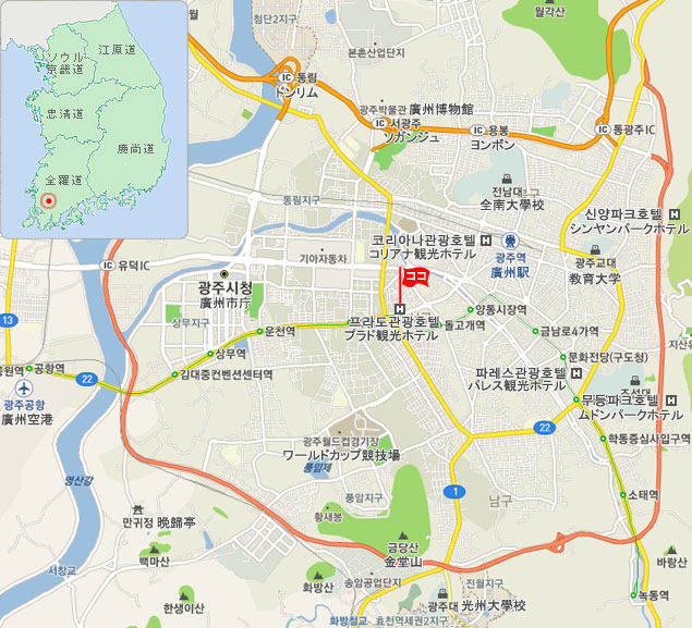 •  光州(クァンジュ)総合バスターミナル: からホテルまで タクシーで10分所要。