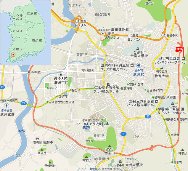 •  光州空港:ホテルまで タクシーで 約 30分所要。