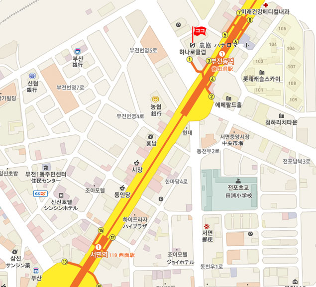 業 所 名 : 農協(ノンヒョッ)ハナロマート釜田店(プジョンジョン) · 釜山 / 농협하나로마트 부전점