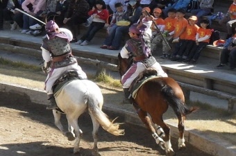 建設費100億ウォンをかけて造られた大型舞台で繰り広げられる各種特殊効果やスタントなどを用いた本格的な水上ショー。ショーの内容は1人の花郎(ファラン)が新羅の危機を救う物語が1日2公演、新羅最初の女王善徳女王の悲恋の物語をテーマにした舞台が1日1公演それぞれ30分ずつ行われます。舞台では各俳優の熱演が繰り広げられ、特に水上に浮かんで微動だにしない死体役の俳優には毎回大きな拍手が送られます。 新羅時代、貴族の子息で組織されたエリート集団「花郎(ファラン)」。その花郎の武芸訓練をテーマにしたショーも行われています。特に馬上武術のショーは必見で、その勇猛な動きは訓練場周囲に配置された新羅時代の建物とマッチし、新羅時代にタイムスリップした気分にさせてくれます。
