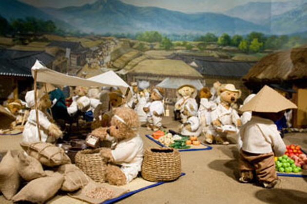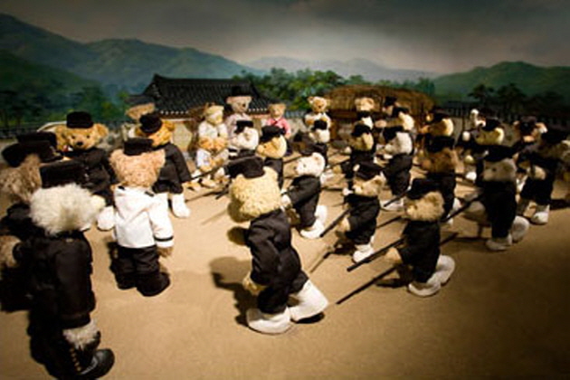 ソウルの人気観光スポットでもあるNソウルタワーのPo階に位置するテディベアミュージアムは1000体以上の熊のぬいぐるみ(テディベア)がソウルの歴史と発展をテーマに展示されています。歴史館では朝鮮王朝の都.漢陽(ハニャン)での王宮の様子や、庶民の暮らし、そして韓国の首都.ソウルへと移り変わる時の流れの中で起こった様々な出来事を可愛らしいテディを眺めながら知ることができます。