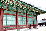 興礼門と光化門 との間に広場があり、チケットはここで購入します。勤政殿(クンジョンジョン) は国宝第22号に指定されている景福宮の正殿で、「民を勤勉に治める」という意味があります。国の政治をつかさどった建物にふさわしく、最も雄大な建物です。中央には玉座があり、その後ろの屏風は「日月五峰図」といいます。景福宮では外国語による解説案内が行われ、日本語でのガイドは1日3回(10:00,12:30,14:30)行われています。また興礼門の前の広場では、朝鮮時代の守門軍の交代儀式を再現した「王宮守門将交代儀式」が行なわれます。景福宮の休日である火曜日をのぞく毎日、10:00~15:00(1月,2月,7月,8月,12月は10:00~16:00)の定刻に15分ほど行われます。